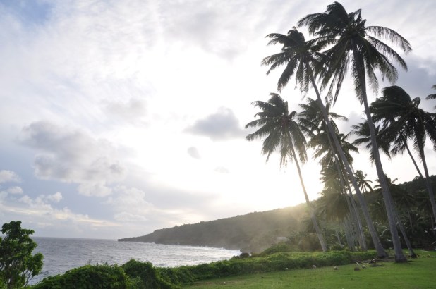 Insect-sized baby red crabs crawled over our sandals and palm fronds and coconuts littered the roads. We drove through the township (called Settlement), past ramshackle houses, shops and apartment blocks, paint flaking off in sheets and metal rusting from the constant salty air. The town’s prized open air cinema was cancelled as the screen had torn in the wind. We arrived at our friends’ house (actually their friends’ – they’re house sitting), which is one of several 1940s weatherboard Queenslander-style homes lining the island’s north, with servants’ quarters from the colonial days, lofty ceilings and perpetually open windows and spinning ceiling fans. From the front deck we watched and listened to waves explode against the cliffs and seabirds ride the winds.