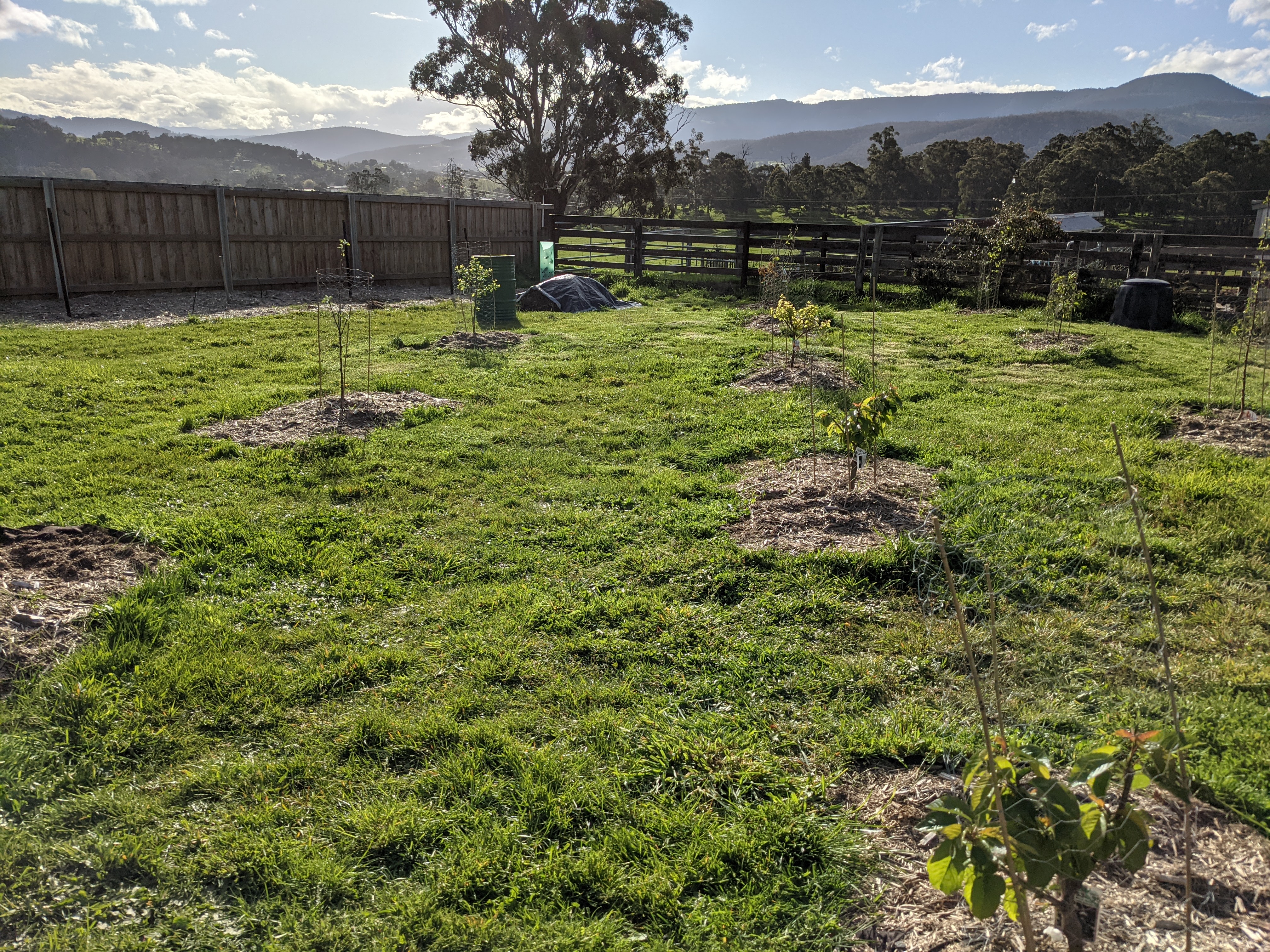 Looking back on our first year in Tasmania – 100 trees, 4 chickens, three months in a caravan and one new human later