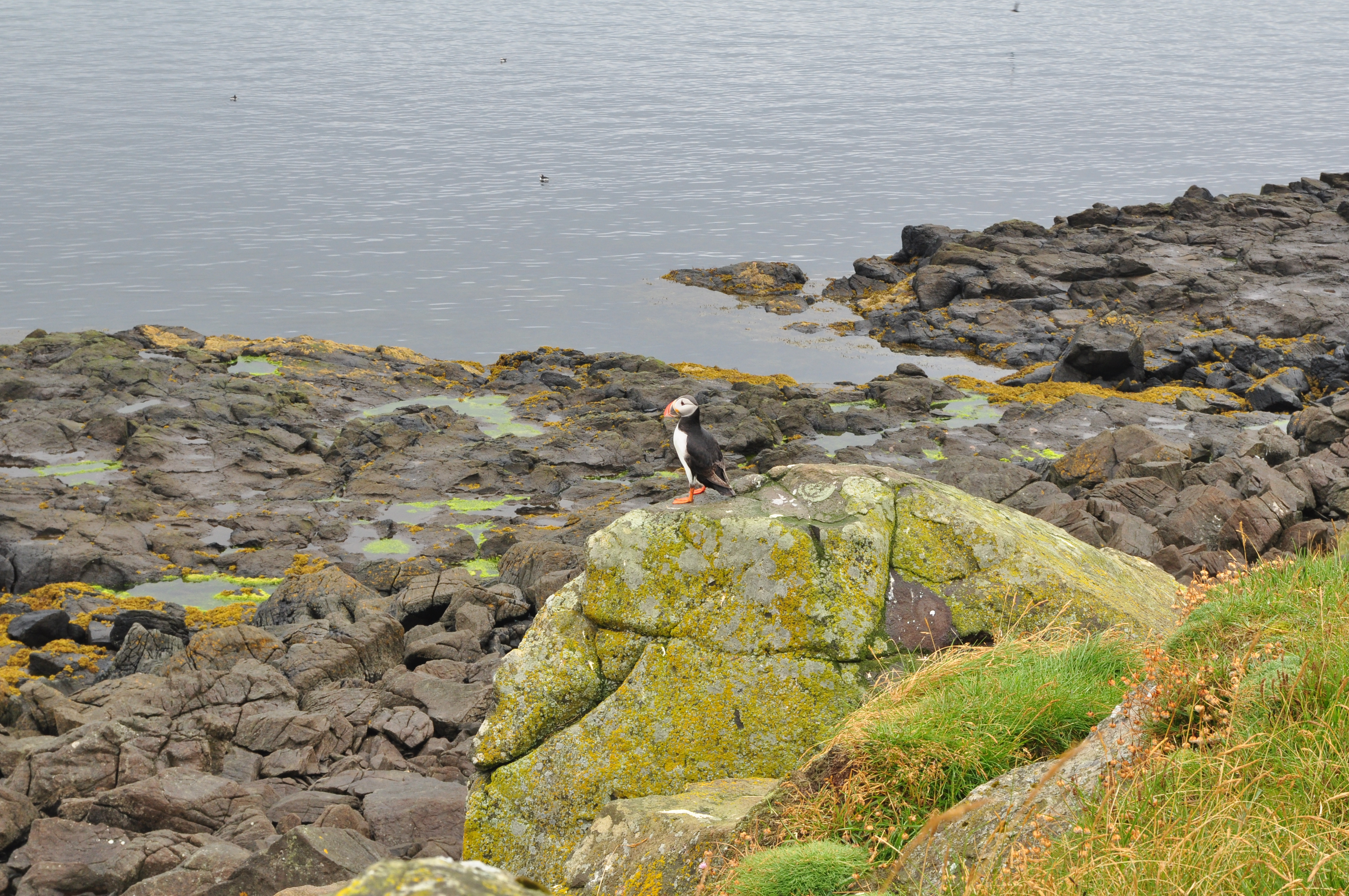 The following sunny morning, we walked along the black sand beach, down to the headland to spot massive circling gulls and darting little puffins, and then boarded the bus to Reykjavik at midday.