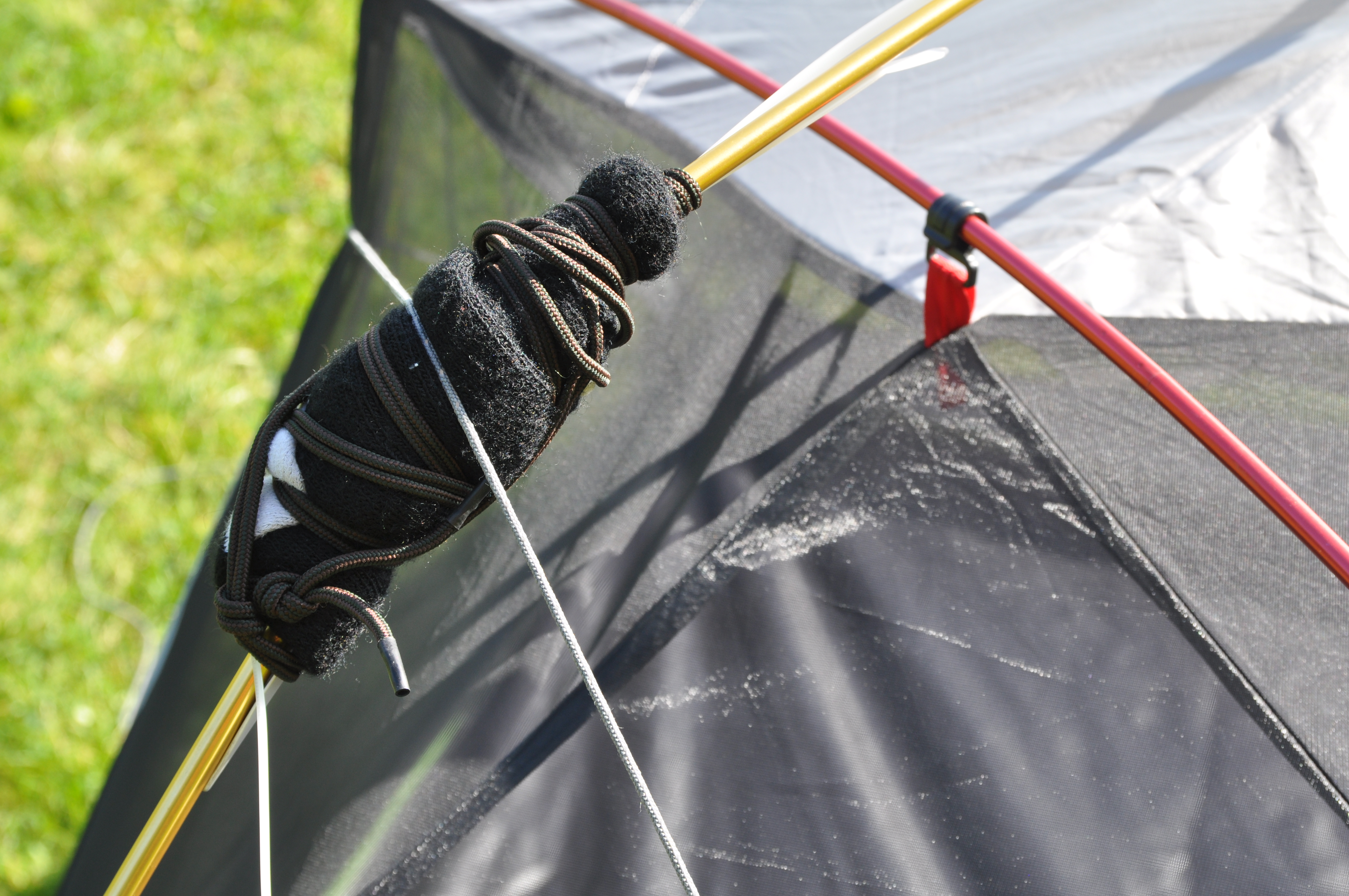 We packed the broken pole into its pannier, then extracted it that afternoon in the communal campsite shelter in Vik, Paul busying himself engineering a solution while the rain beat down on the corrugated roof, and I read and prepared tea and snacks. The Frankenstein-esque result included pieces of wire coat-hanger, cable ties, gaffer tape, a wool sock and a spare shoelace to wrap the whole thing together. It stuck out like a growth under the tent fly, but we hoped it would do the job for the three final nights of camping.*